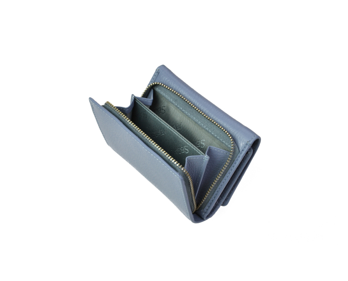 Přední stranu peněženky zdobí elegantní kovové logo výrobce. Hlavní úložný prostor peněženky je uzavíratelný na kovový druk/cvoček. Kapsa na mince je opatřena kovovým zipem a je rozdělena na dvě části, taktéž i přihrádka na bankovky pro pohodlné uspořádání.