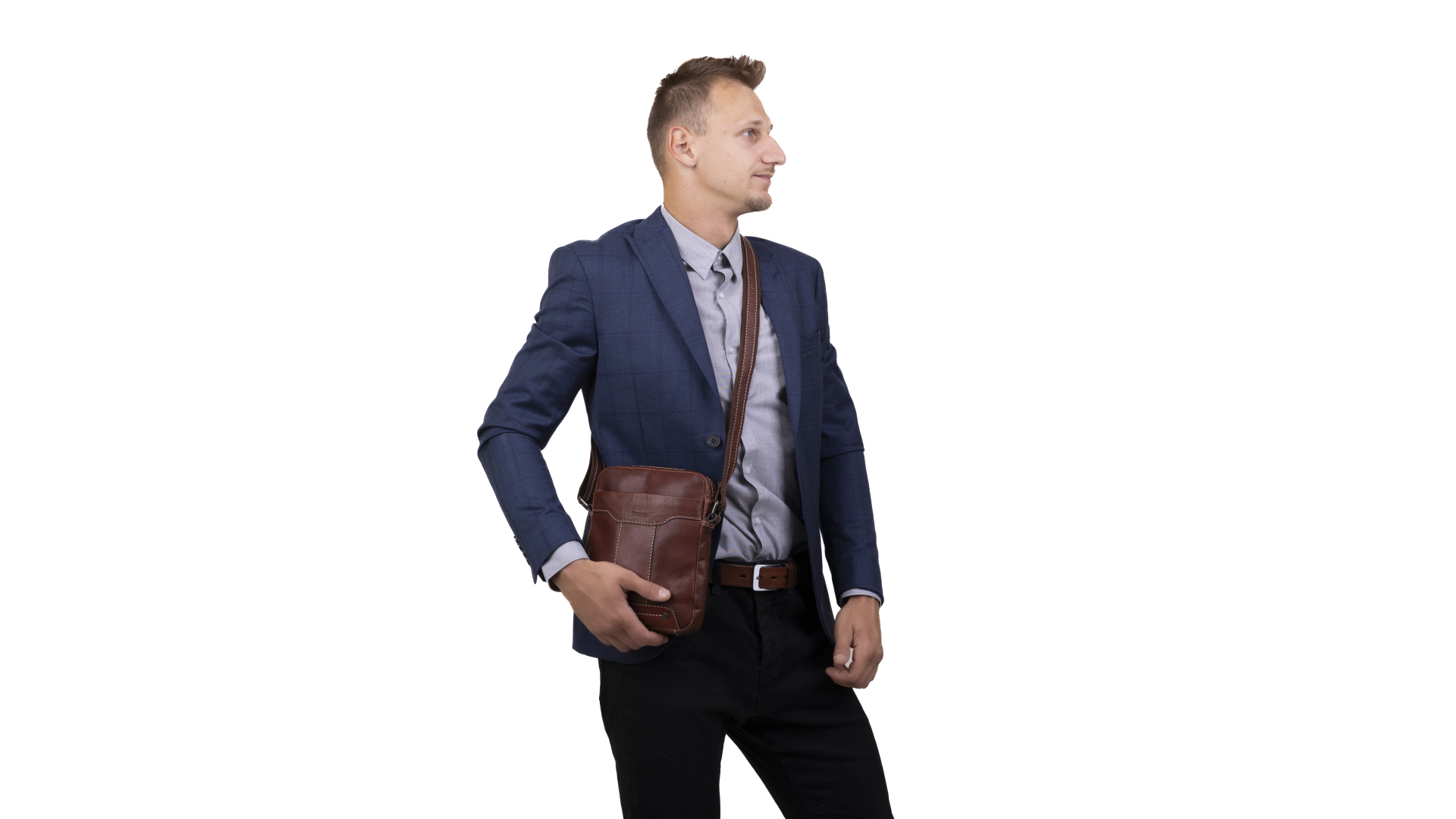 ručně vyrobený pánský crossbag z hovězí úsně s nastavitelným ramenním popruhem prošitým kůží o délce 160 cm. Crossbag je decentně prošitý světlejší nití, která mu dodává ,,šmrnc". Možno nosit přes jedno rameno nebo přes hlavu. Vnitřní přihrádka je potažena odolnou podšívkou ze silné bavlny.